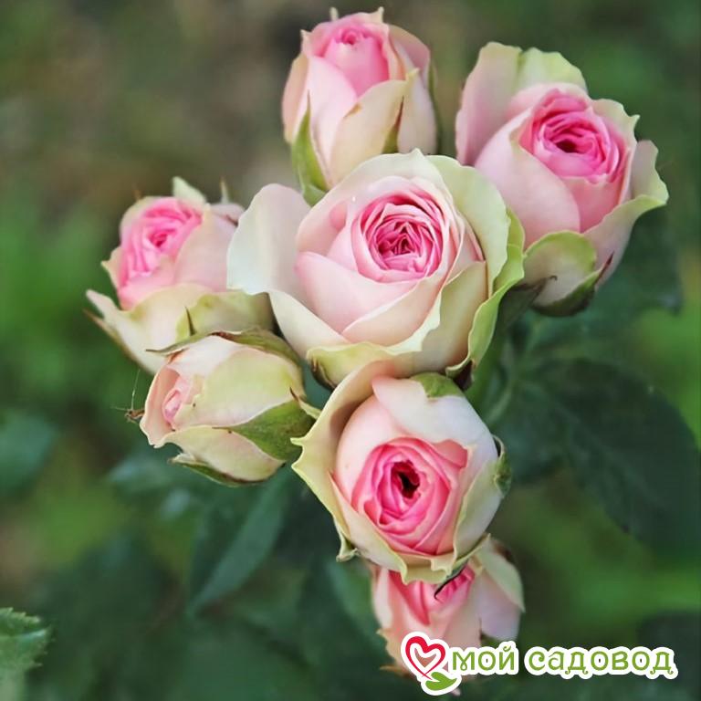 Роза Мими Эден Представленный на фото каталога сорт выведен в 2001 году во Франции. Для этого селекционеры скрестили полиантовую и чайную розы. Растение встречается под производственным наименованием MEIptipier. Ботаническое описание Мими Эден – аккуратный кустик, высота которого достигает не более 85 см (чаще в пределах 50 см). Со временем он довольно хорошо разрастается в диаметре. Стебли плотные, с минимальным количеством шипов. Листва глянцевая, некрупная, ярко-зелёного цвета. Со средины лета и до осенних заморозков саженцы радуют глаз обильным цветением. Обычно на цветоножке образуется 5 – 10 бутонов. Последние раскрываются постепенно, сменяя друг друга. Набитие лепестков достаточно плотное (в каждом цветке от 27 до 40 штук). Соцветия шарообразной формы, двухцветные. Сердцевинка бледно-розовая, густомахровая, с бело-зелёной окантовкой. Диаметр полностью раскрывшегося цветка не превышает 5 см. Роза источает слабый аромат, с лёгкими цветочными нотками. Применение Роза Мими Эден может использоваться для контейнеров и бордюров. Многие цветоводы выращивают многолетник в саду или для срезки. Растение достойно украсит не только частную территорию, но и зону отдыха в парках и скверах. Агротехника Под посадку розы Мими Эден отводят хорошо освещённые места. Поскольку куст широко разрастается, не лишней будет организация опоры. Рассаду можно размещать группками, на расстоянии 50 см друг от друга. Также на развитие многолетника влияет состав почвы. Для полноценного роста цветам нужен питательный, рыхлый и воздухопроницаемый субстрат. По уходу рекомендуется соблюдать несколько простых правил. К примеру, обеспечить рассаде умеренный полив тёплой и отстоянной водой. После процедуры важно разрыхлить землю вокруг кустов, чтобы не образовывалась корка. Розы Мими Эден обильно и длительно цветут после внесения фосфорно-калийных подкормок. Удобрения желательно использовать 2 раза за сезон — в осенний и весенний период. Перед началом морозного сезона саженцы надо утеплить. Особенно это касается молодых, неокрепших экземпляров (в первые годы после посадки). С этой целью кустики окучивают грунтом на значительную высоту. Слишком длинные побеги аккуратно пригибают и фиксируют металлическими скобами. Под стебли подстилают еловый лапник, чтобы растение не соприкасалось с влагой. Далее розу накрывают теплоизоляционным материалом – лутрасилом, спанбондом или агроволокном. Для размножения сорта Мими Эден тонкую и гибкую макушку побега не используют. Её нужно состричь острым секатором. Оставшийся стебель, диаметром приблизительно в 0,5 см, нарезают на черенки. С одного побега можно получить 1 – 2 черенка (в зависимости от длины). Преимущества розы Мими Эден У рассматриваемого сорта розы-спрей много положительных качеств. Например, это: хорошая морозостойкость (выдерживает температуру до -26 ˚С); длительный период цветения. Начинается он со средины июня и заканчивается во второй половине сентября. В течение этого времени роза выпускает 2 – 3 волны с интервалом в 14 дней; оригинальная двухцветная окраска лепестков; лёгкий, ненавязчивый аромат; минимальное количество шипиков на побегах; компактные размеры куста. Купить рассаду сорта Мими Эден можно не только в торговых организациях и магазинах, занимающихся облагораживанием садово-парковых зон. Качеств
